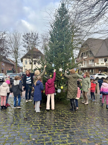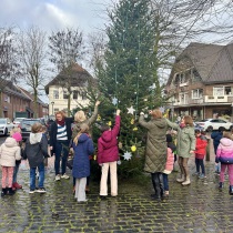 In Ramsdorf fand am 9. Dezember ein festlicher Schmücktag statt. Die Kinder der Walburgisschule hatten mit Unterstützung des ersten Beigeordneten Dr. Thomas Brüggemann viel Freude daran, den Baum mit liebevoll bemalten Holzanhängern zu verzieren.